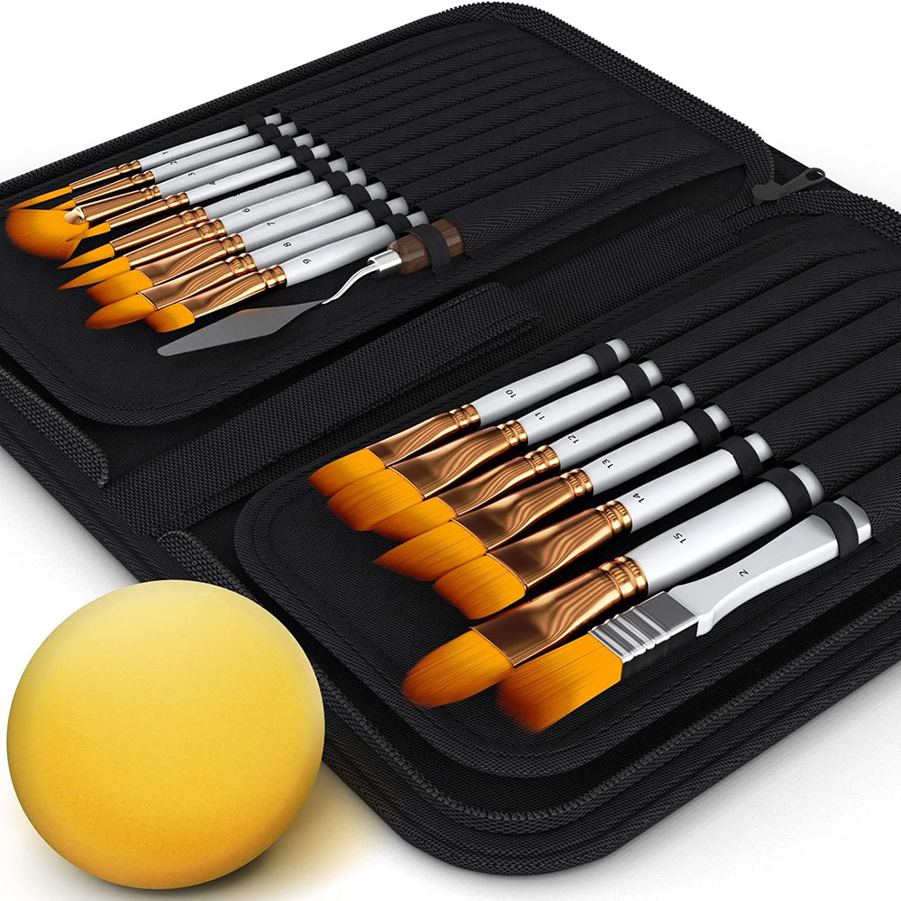 16피스 프리미엄 아티스트 페인트 브러쉬 세트 - 팔레트 나이프, 스펀지, 정리 케이스 포함